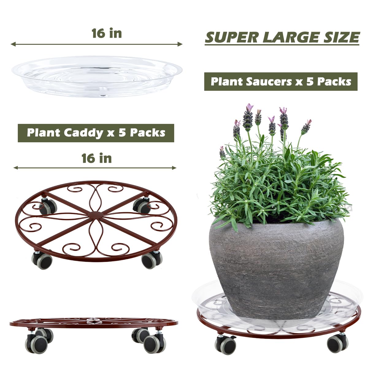 Amazon Com 5 Pack Plant Caddy With Wheels Heavy Duty 16 Inch Large Metal Plant Stand With Wheels Plant Dolly Rolling Plant Stand Plant Roller With Casters For Indoor And Outdoor With 5